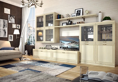 Классические стенки в гостиную создают гармоничную и изысканную атмосферу, добавляют элегантности, подчеркивают хороший вкус хозяев. Современная стенка в классическом стиле для гостиной отличается вместительностью и функциональностью. Внутри без труда помещаются габаритные вещи. В стеклянных шкафах отлично смотрятся предметы декора, красивая посуда.
