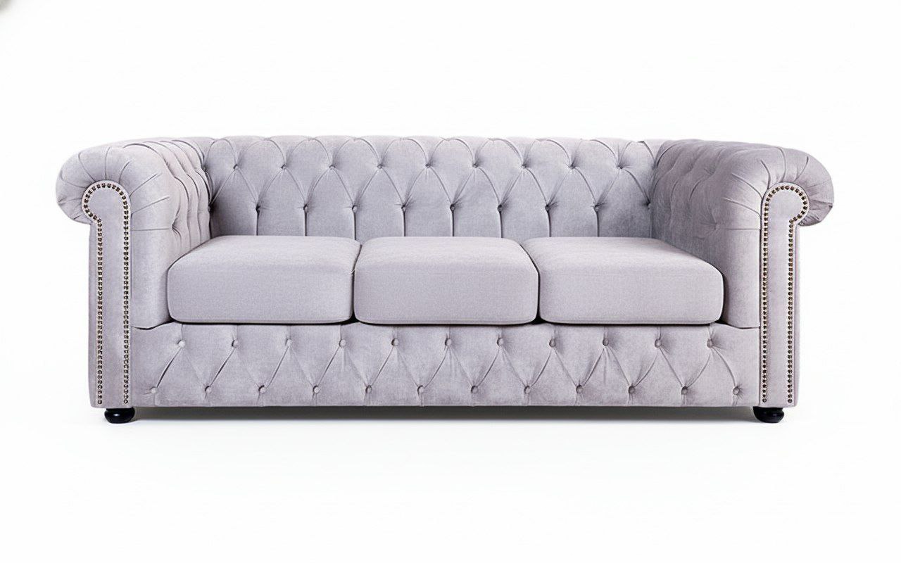 Мягкая мебель повышенной комфортности создаст атмосферу особенного уюта в спальне или гостиной, станет прекрасным решением для малогабаритного помещения. Приятная на ощупь обивка из велюра хорошо сохраняет тепло, отличается прочностью и износостойкостью. Округлые спинка и подлокотники, гвоздевой молдинг, каретная стяжка подчеркивают общую стилистику изделия.