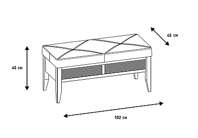 - Банкетка: крышка откидная, с мягким элементом. Буковые опоры покрыты эмалью в цвет корпуса;